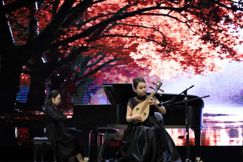 2012级声乐表演方向本科生、2016级音乐表演方向研究生、2022级韩国岭南大学博士研究生张继超声乐演绎《来香巴拉看太阳》《爱永在》,向观众传递爱与希望。2011级音乐表演方向本科生、2015级音乐表演方向研究生、音诗雨轩艺术工作室主理人黄艳柳琴弹奏《梧桐雨》,为我们编织静谧浪漫氛围。