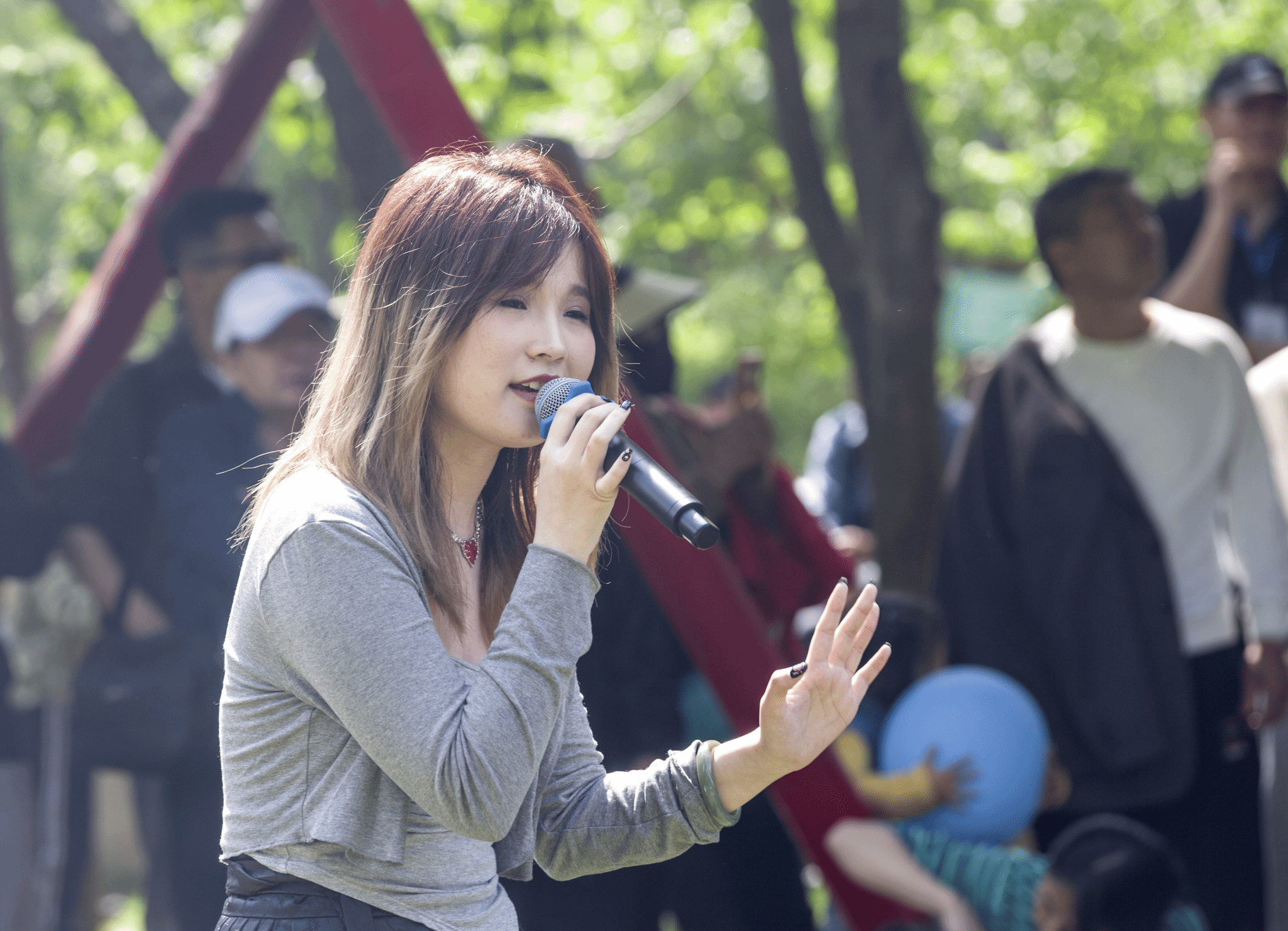 本次活动的高光时刻,当属唐磊副教授登场。二十年前,《丁香花》火遍全国,成为一代人青春符号;二十年后,唐磊在泉城公园丁香园再度唱响经典。旋律响起,全场观众自发合唱,歌声与花香交融,成为春日泉城动人风景。从民谣歌者到高校美育工作者,唐磊表示,带领学生在家门口为市民歌唱,是课堂教学与社会服务的完美结合,既检验专业教学成果,也让青年学子在服务中感悟艺术价值,意义非凡。