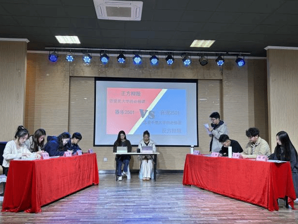 11月1日晚,复赛激烈上演,从初赛中脱颖而出的队伍围绕“恋爱是否为大学的必修课”“爱的最好境界是等待还是放弃”这些由同学们亲自选出的辩题展开交锋。赛场之上,亮点频出:一方引经据典,从哲学、心理学角度层层剖析,逻辑严谨;另一方则巧用生活观察与社会热点案例予以回应,机智灵动。自由辩论环节,双方选手反应迅捷,质询一针见血,防守从容不迫,思想的火花不断碰撞,充分展现了音院学子不仅艺术专业能力突出,更具备出色的思辨才华与知识储备。